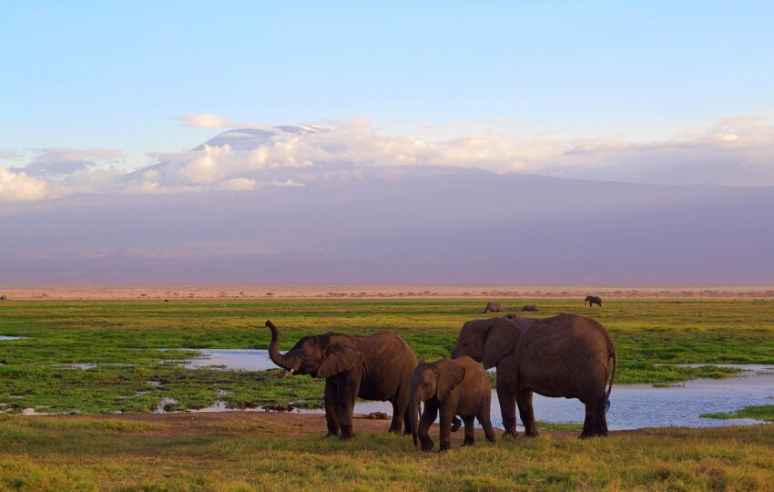 Located near the Kenya–Tanzania border, Amboseli lies at the base of the majestic Mount Kilimanjaro, Africa’s highest peak (5,896m). On clear days, its snow-capped summit provides one of the most iconic backdrops in Africa. Often called the “Home of Elephants,” the park is renowned for its large elephant herds and exceptional wildlife viewing opportunities.